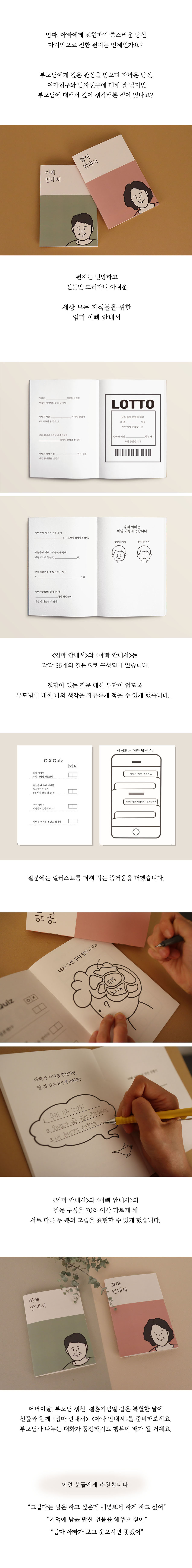 어버이날, 부모님 생신과 같은 특별한 날에 선물과 함께 엄마 안내서, 아빠 안내서를 함께 준비해보세요.