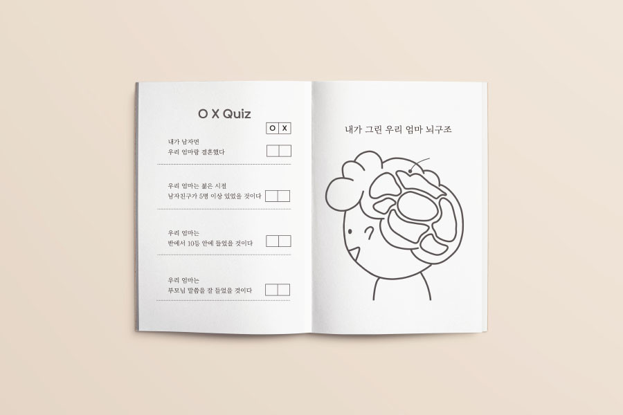 <엄마 안내서>와 <아빠 안내서>는 엄마, 아빠와 관련된 36개의 질문으로 구성되어 있습니다.