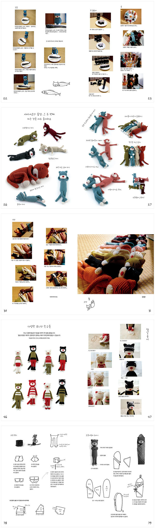 이 책에는 손뜨개 인형을 만드는 법도 상세히 나와 있지만, 일상을 함께 공유하는 것처럼 친근한 느낌의 사진을 엿보는 재미가 있다. 여러 장면의 사진을 보고 있으면 진짜 인형이 살아있는 것처럼 느껴지기도 한다.