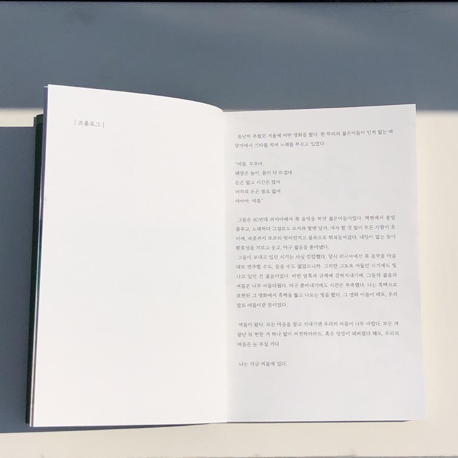‘지금 난 여름에 있어’라는 책 제목에서 ‘여름’은 그런 이중적인 의미를 담고 있다. 여름과 청춘.