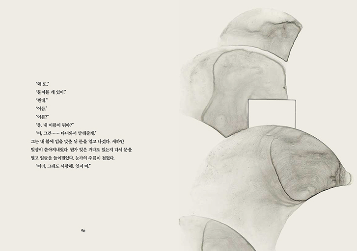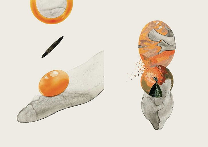 헤르만 헤세의 『데미안』에 나오는 신神 아브락삭스, 서양 동화인 『황금알을 낳는 거위』 『헨젤과 그레텔』 등이 ‘그림 속 그림 속 그림’(미장아빔mise en abyme)처럼 다층적 텍스트를 이루는 이야기의 미로. 일러스트레이터는 작품의 주요 모티프로 등장하는 원의 이미지(알, 토끼의 눈, 오렌지)에 착안해 원형(알)의 형성과 변형으로 시각적 서사를 구축해낸다.