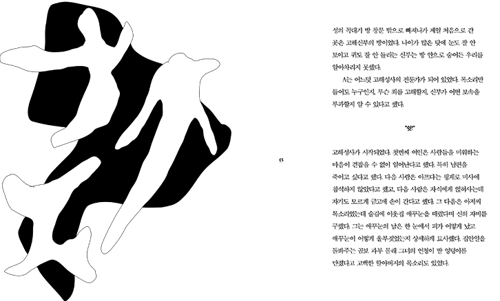 잔혹하고 무고한 여자들이 빚어내는 미스터리의 순환. 죄 지은 다수는 침묵하고 죄 없는 소녀만이 홀로 밤마다 사죄문을 쓰는 부조리한 세계의 우화. 그래픽디자이너는 소설 속 인물들을 상징하는 도형 및 죄와 욕망, 구원을 암시하는 색의 단순한 구도로 파격적인 이미지의 조합을 연출한다. 『화이트잭』은 어느 날 갑자기 사라져버린 성의 여주인 Q, Q의 숨겨진 연인이자 백발의 벙어리 여인 W, 매일 사죄문을 쓰는 주인공 소녀 ‘나’, 그녀를 위해 세상 사람들의 죄를 훔쳐오는 친구 A, 밤마다 성 안의 우물가를 서성이는 비밀스러운 집사 P, 다섯 명의 이야기다. 수수께끼 같으면서도 명징하고, 빈틈이 없지만 열려 있고, 때로는 논리적이어서 슬픈, 카프카와 아고타 크리스토프의 그림자가 아른거리는 우화이자 기이한 윤리의 세계. 다양한 인물들이 품은 비밀들이 하나씩 풀려나가고, 트럼프 카드 하나로 새로운 게임을 창조하여 죄로 얼룩진 세계를 돌파하려는 치밀한 시도가 펼쳐진다.