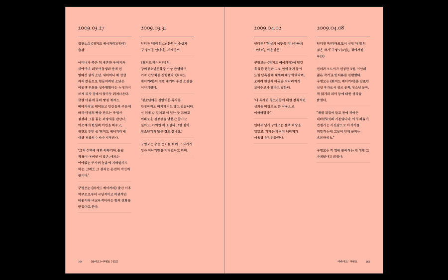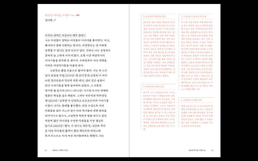 비평이라는 그럴싸한 단어가 아니라 ‘덕질’과 ‘아카이빙’이라는 단어로 말입니다. 한 작가의 작품, 연재글, 참여 인터뷰, 그리고 미발간 작품까지 모아 빠짐없이 읽고 정리해 아카이빙하면서, 작가의 시선이 닿았을 모든 것을 모아 엮습니다.