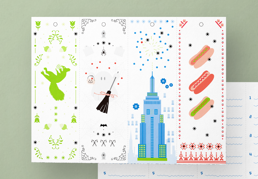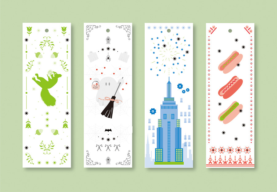 뉴욕의 네가지 이미지가 담긴 책갈피입니다.