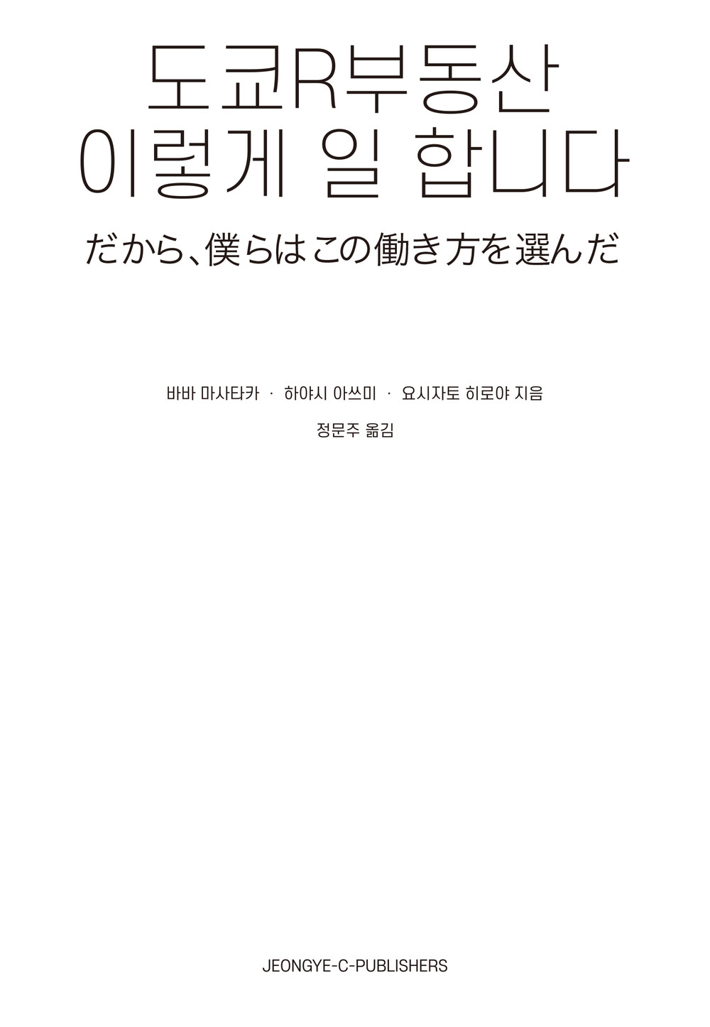 도쿄R부동산의 한국어 출간 도서는 〈도쿄R부동산 이렇게 일 합니다〉(2020), 〈당신의 라이프스타일을 중개합니다: 도쿄R부동산〉(2017)이 있다.