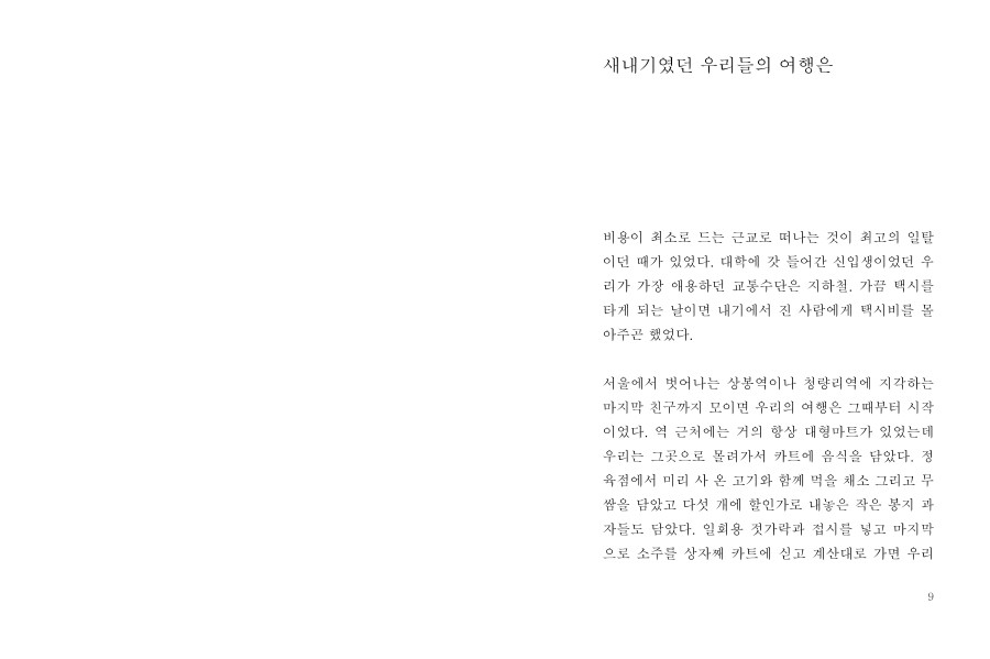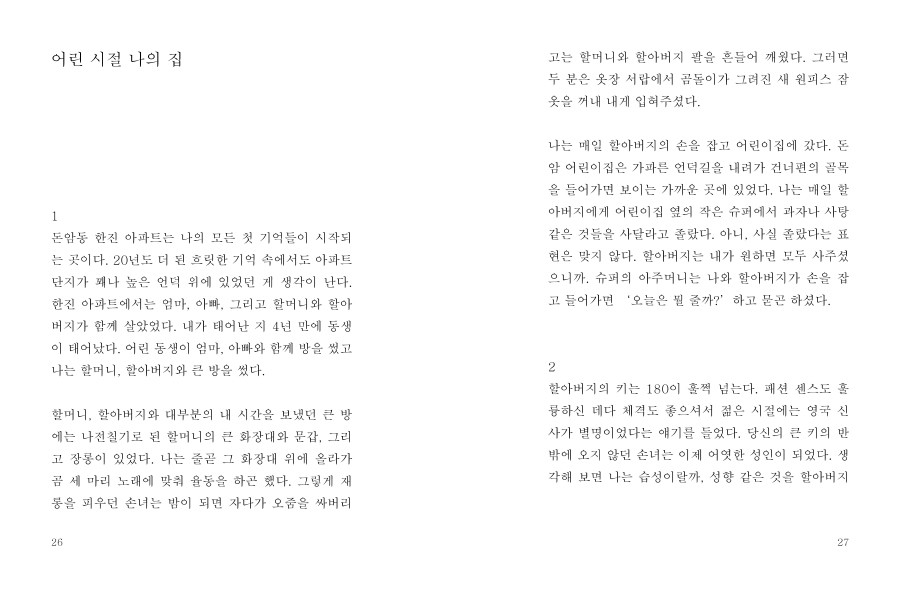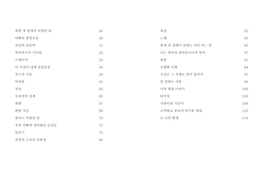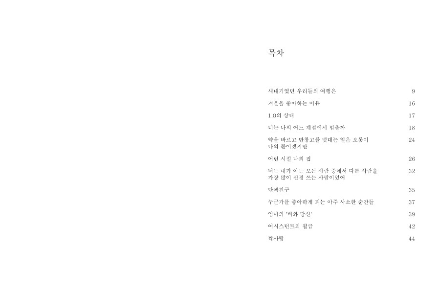 저를 채우는 사람들에게서, 그리고 제가 지나온 장면들에서 몹시 감정적이거나 때론 구질구질하거나 했던 저의 모습들을 고스란히 담았어요. 저에게는 다가올 날들에 추억을 떠올리게 하는 기록이, 또 누군가에게는 일상 속 소소한 공감과 위로를 건넬 수 있기를 바랍니다.
