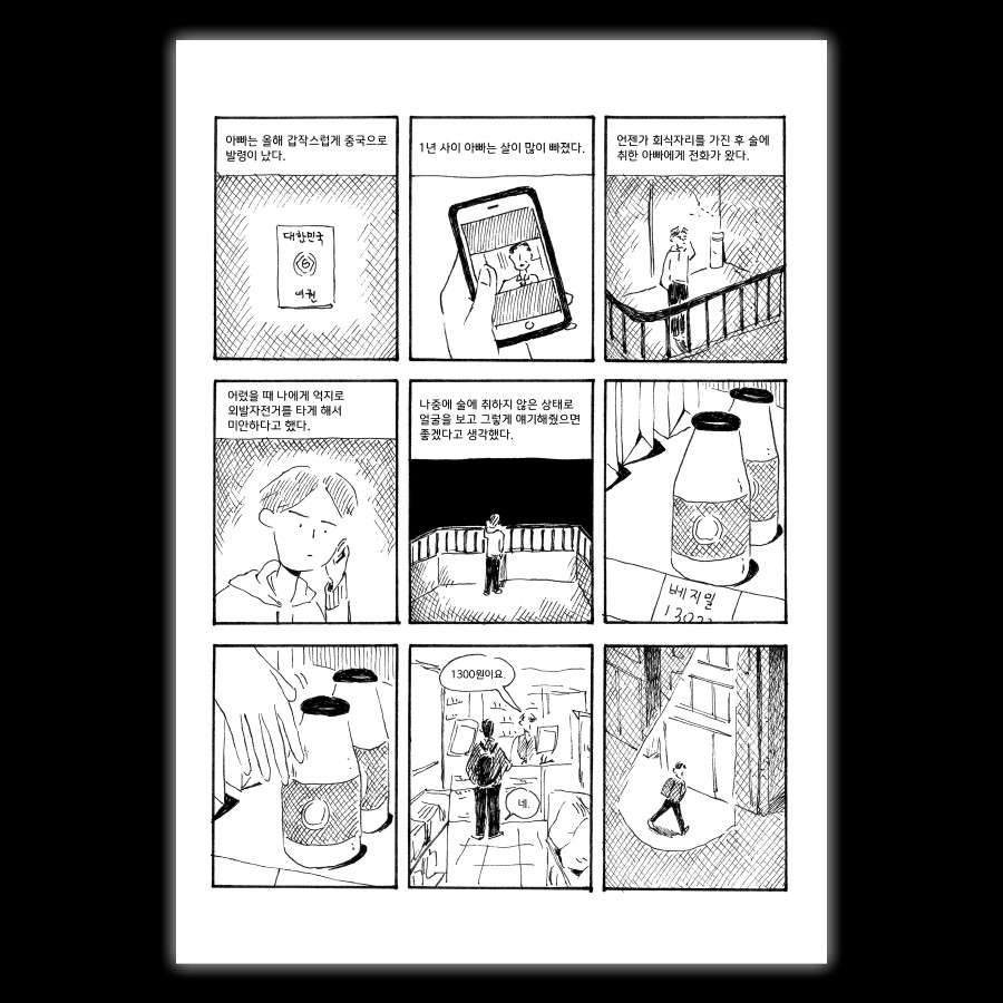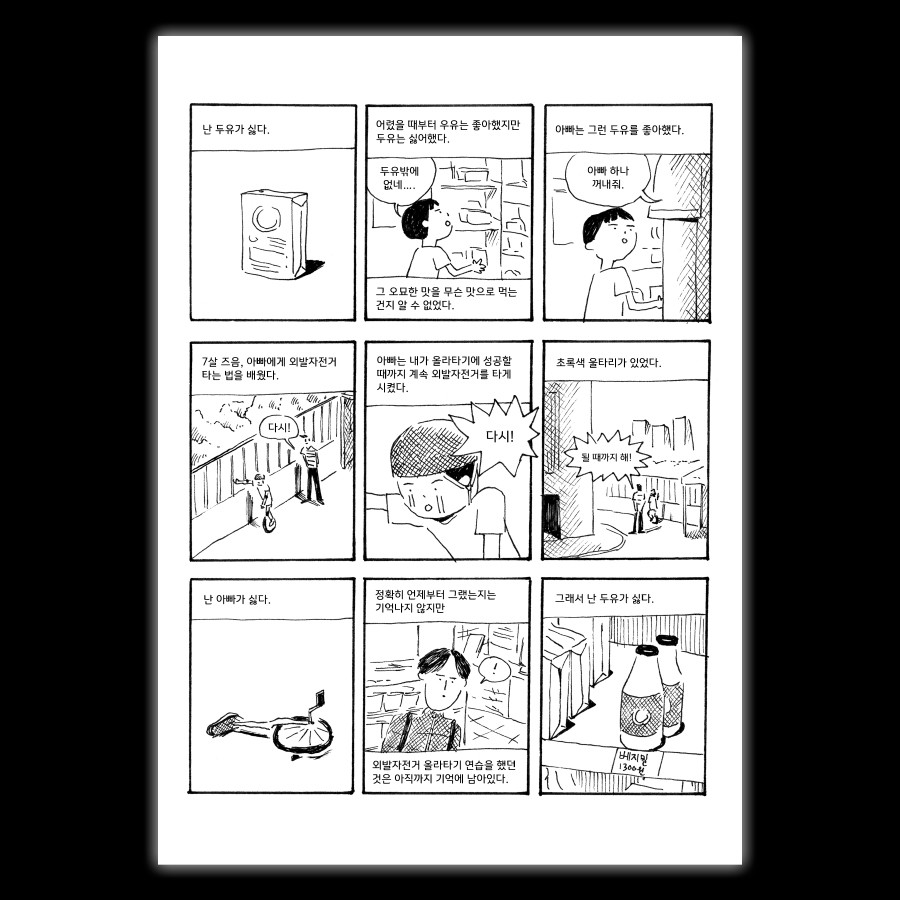 두유와 얽힌 아버지와의 기억을 떠올리는 자전적인 이야기입니다.