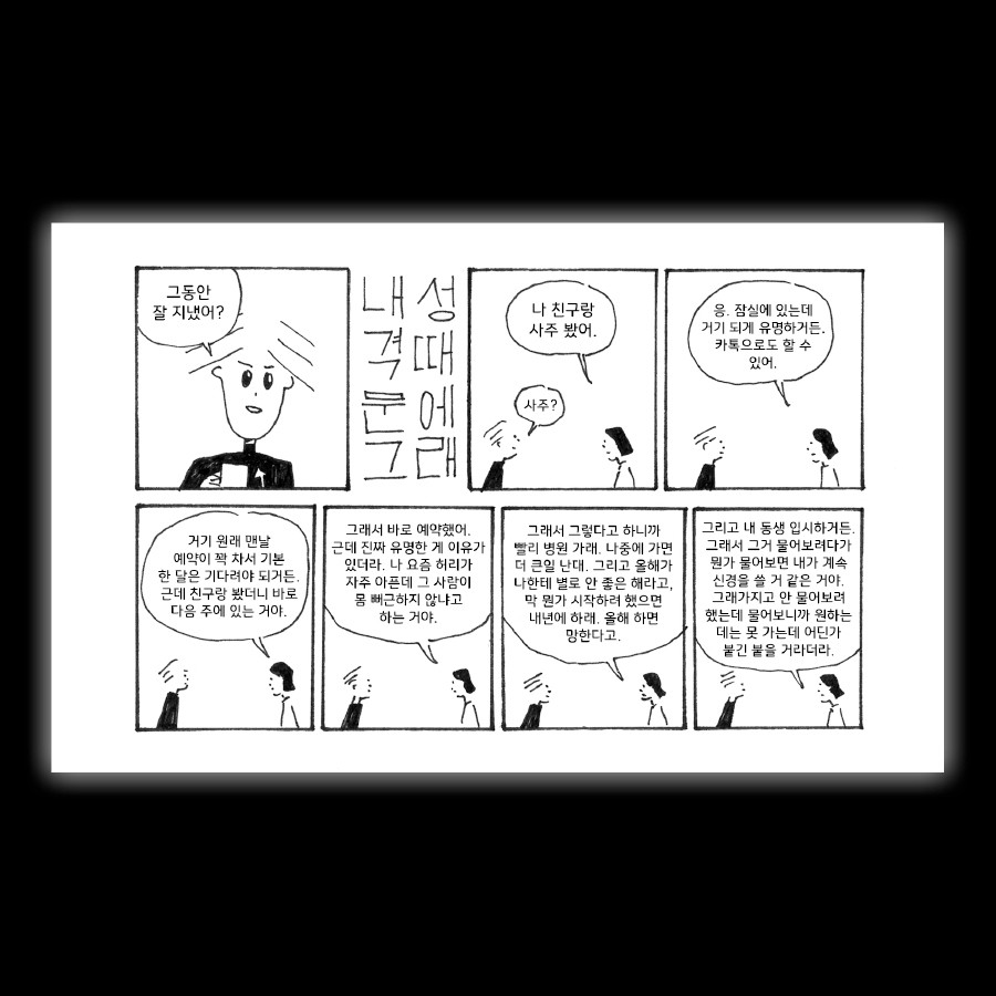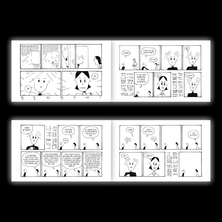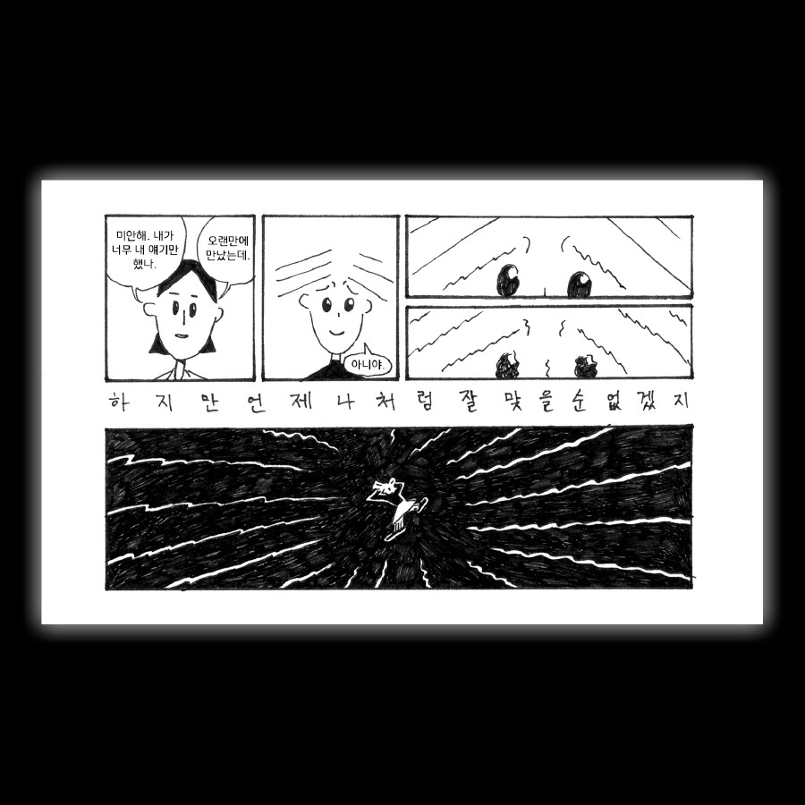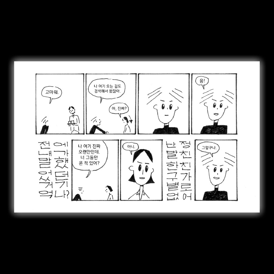 반가운 친구의 근황을 물어보며 대화를 나눠보지만 어딘가 예전 같지 못함을 느낍니다.