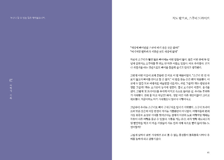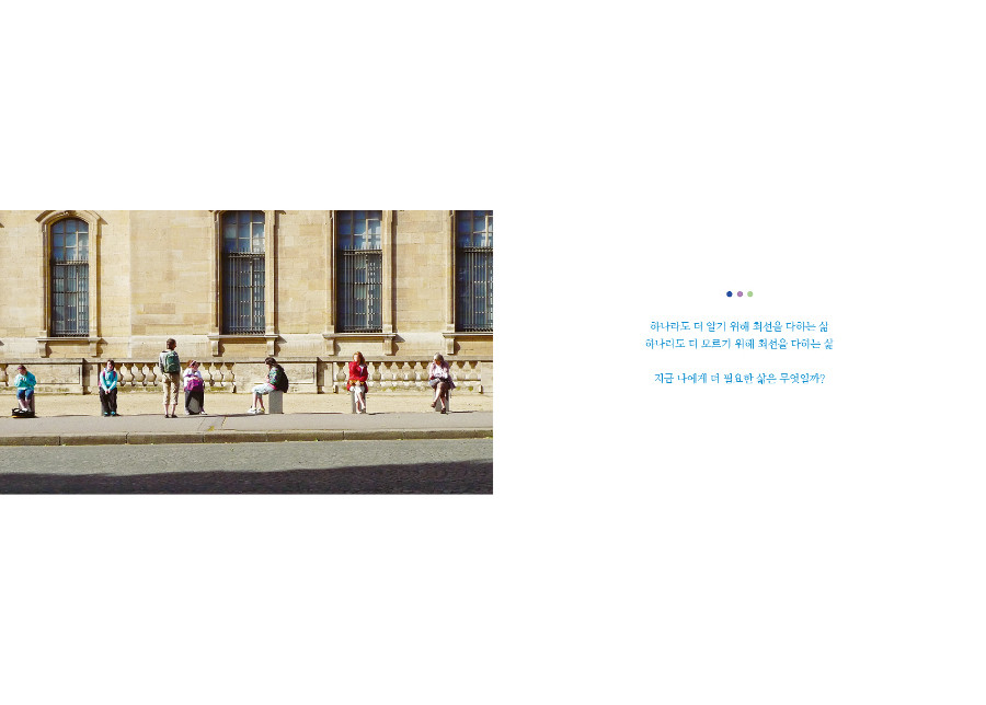 여행자이자 동시에 일상인인 우리 모두에게 이 책이 전하는 메시지. 만족스러운 일상에 도착하기까지, 우리의 여행은 계속되어야 한다! 여행과 일상의 괴리 속에서 오늘도 혼란하게 살아가는 모든 이들에게 이 책이 힘이 되었으면 좋겠다.