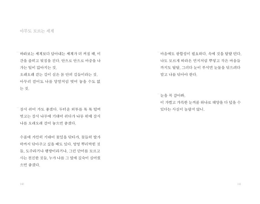 선명하게 펼쳐지는, 그것이 내가 살아가야 할 세계. 그것이 내가 걸어가야 할 세계.