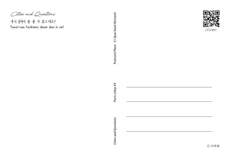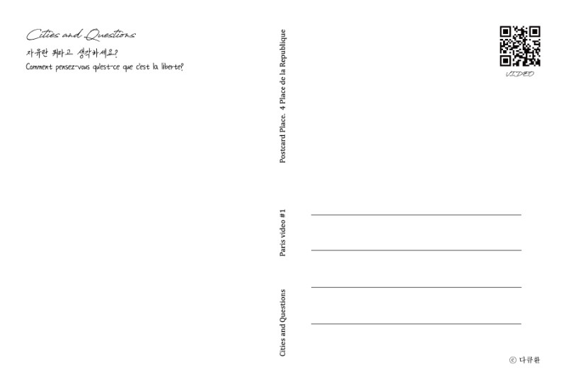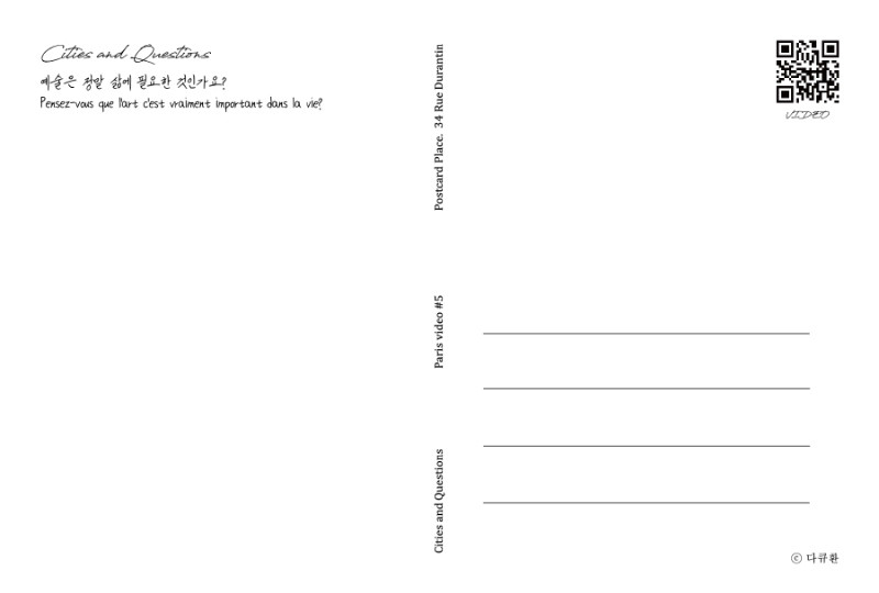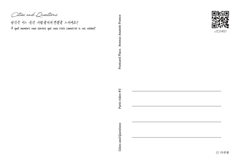 일반 엽서가 아닌 비디오 엽서입니다. 엽서에는 각각의 사진과 연결되는 주제의 비디오가 작은 QR코드로 담겨있습니다.