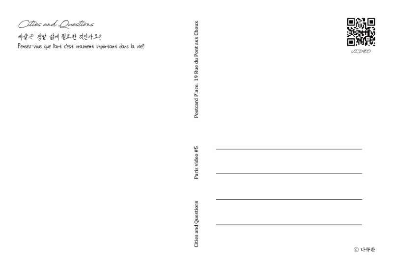 * 엽서에는 각각의 사진과 연결되는 주제의 비디오가 작은 QR코드로 담겨있습니다.