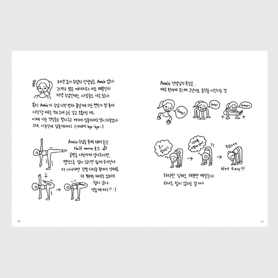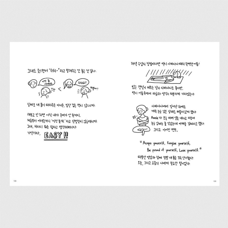 일주일간 매일 요가하며 쓰고 그렸던 일기를 그대로 옮긴 기록물입니다.