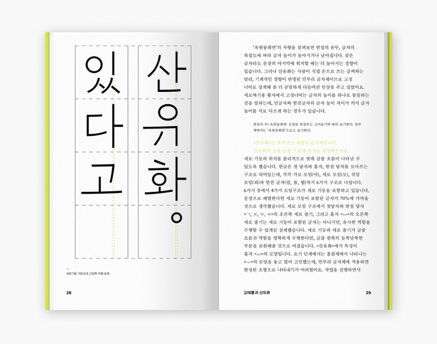 가로쓰기용 폰트였던 이면체를 발표한 적이 있는 김태룡 디자이너가 이번에는 세로짜기용 폰트를 제작했습니다.