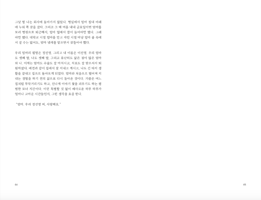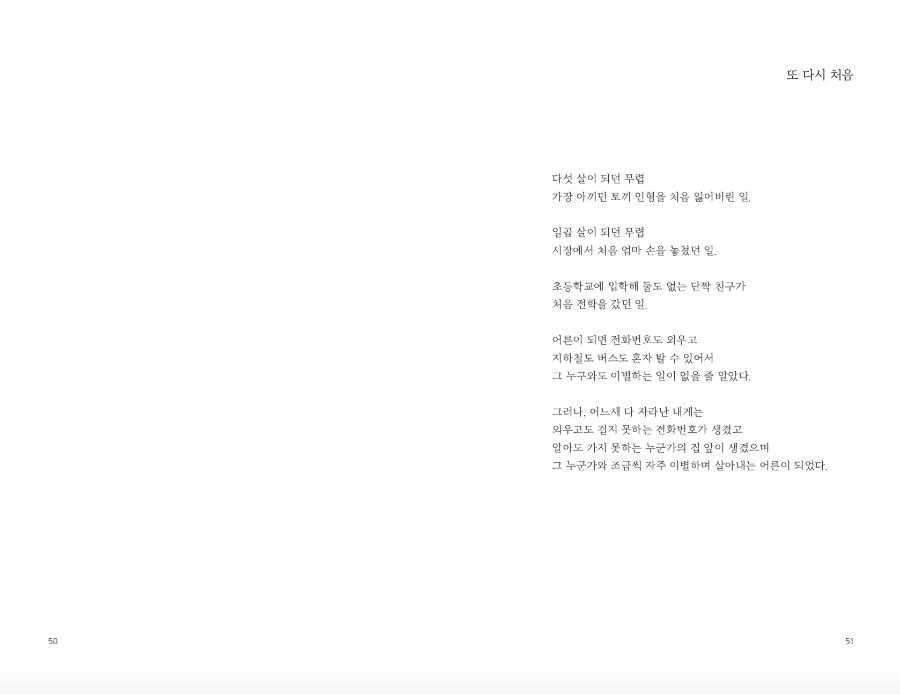 나름대로 꽃 같았던 우리의 처음을 돌아봅니다. 처음에서 다시 출발할 우리와 당신의 앞으로를 담았습니다.