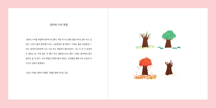 엄마에 대한 다양한 감정들을 글과 그림으로 소소하게 기록한 그림책입니다.