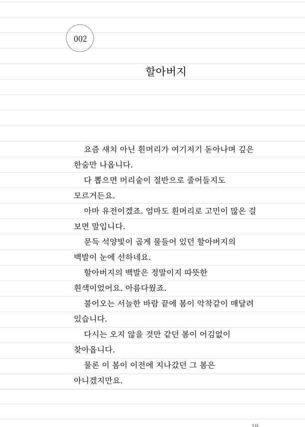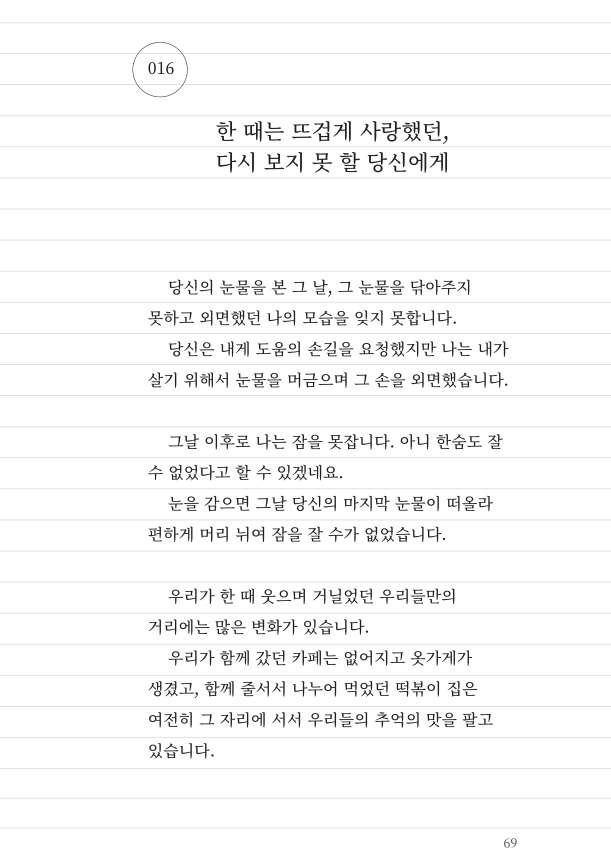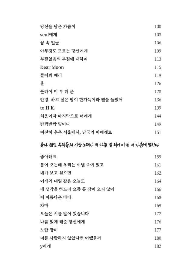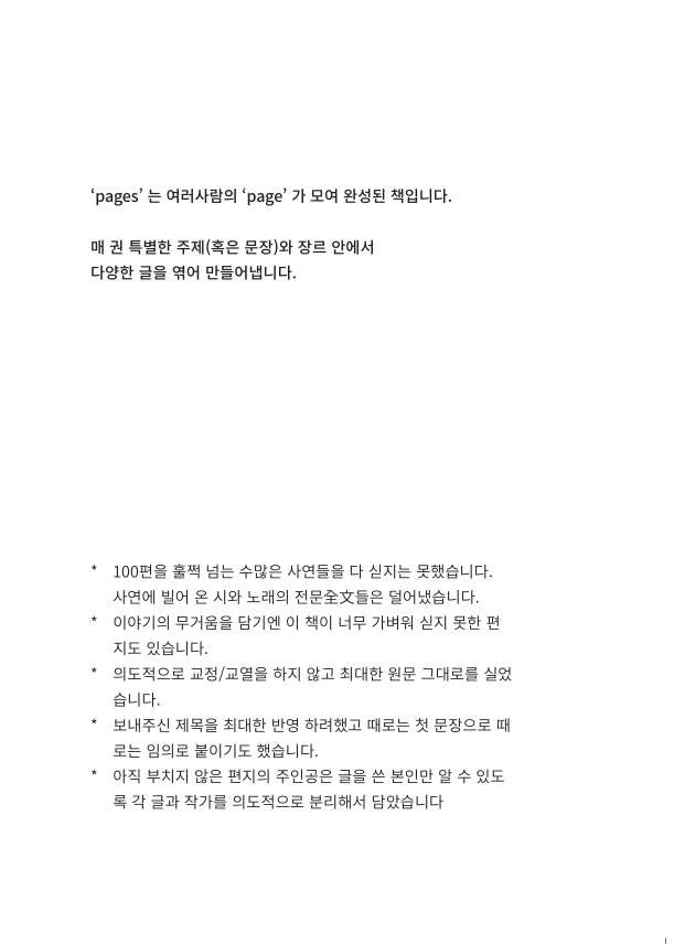 네 번째 pages는 ‘부치지 않은 편지’이라는 하나의 말로