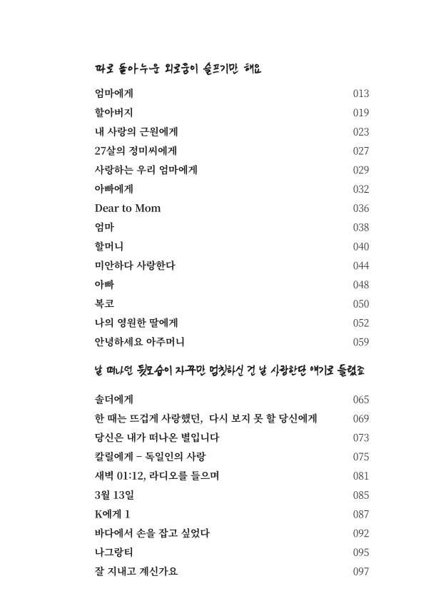 혹은 차마 부칠 수가 없어서 마음 한편에 접어 둔 편지를