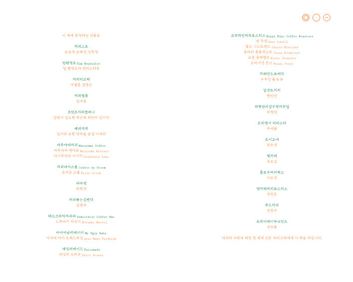 커피 필터를 접는 법도 모르는 쌩초보의 질문부터 커피업을 시작한 지 얼마 안 된 바리스타의 미래에 대한 고민, 이제는 커피투어의 성지가 될 정도로 유명한 카페의 대표들이 말하는 커피업계의 지속가능성에 대해, 아니 그보다 더 현실적으로, 얼마나 견딜 수 있을지에 대해 진솔