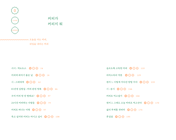 커피 한 잔 생각날 때 펼치면 설레고 두근거리는 책입니다.