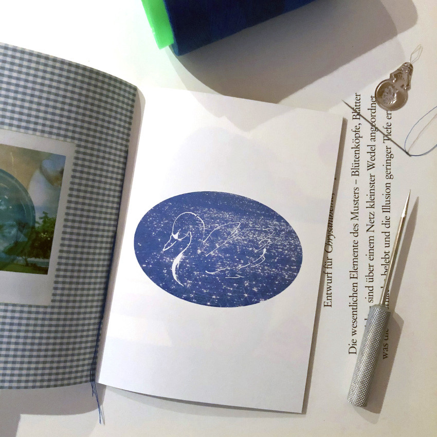 -여름에 잘 어울리는 파란색의 실로 직접 제본해 만들었습니다.