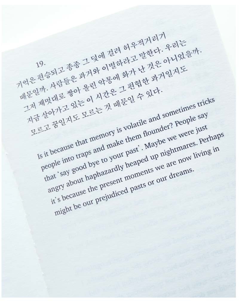 자기 자신에게 질문하지 못하고, 답하지 못했던 작가는 무작정 여행을 떠난다. 길을 걸으며 무의식적으로 찍어낸 사진은 글 대신 작가에게 물음을 던지고, 무형의 질문에 작가는 짤막한 문장으로 답한다.