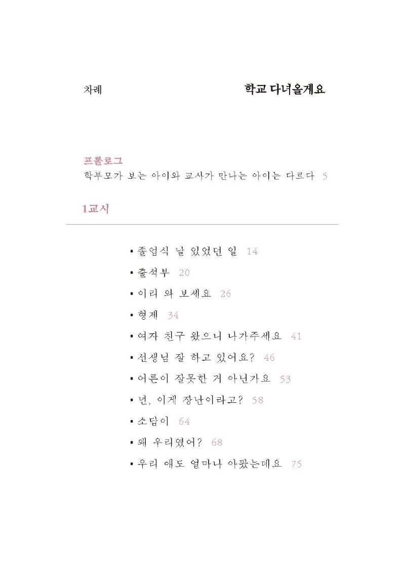 모든 사건을 감싸 안는 것이 과연 아이들과 이 사회를 위하는 일인가? 생각해볼 일이다. 『학교 다녀올게요』를 통해 덜 미숙한 우리 어른들이 아이들을 위해 어떤 학교를 만들어줘야 할지 생각해보는 좋은 계기가 될 것이다.