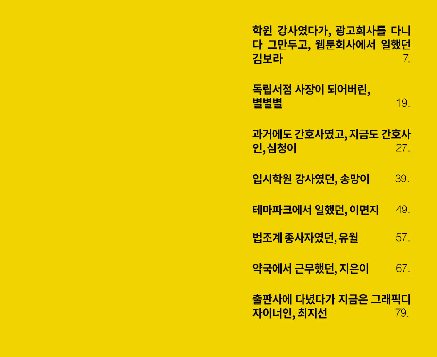 예측 불가한 직종의 퇴사자들이 광주 양림동에서 만나 이야기를 시작합니다.