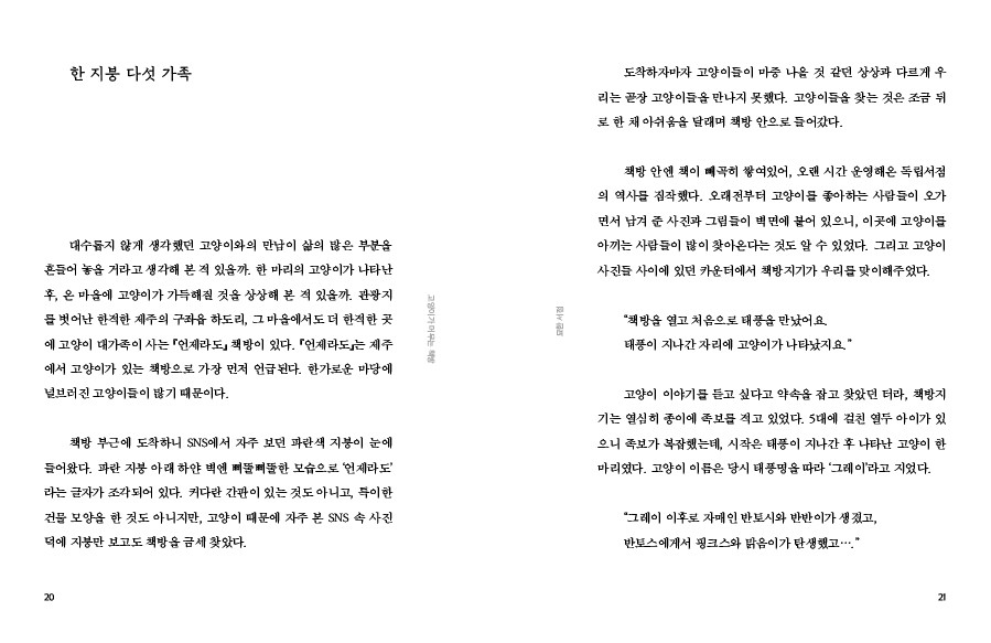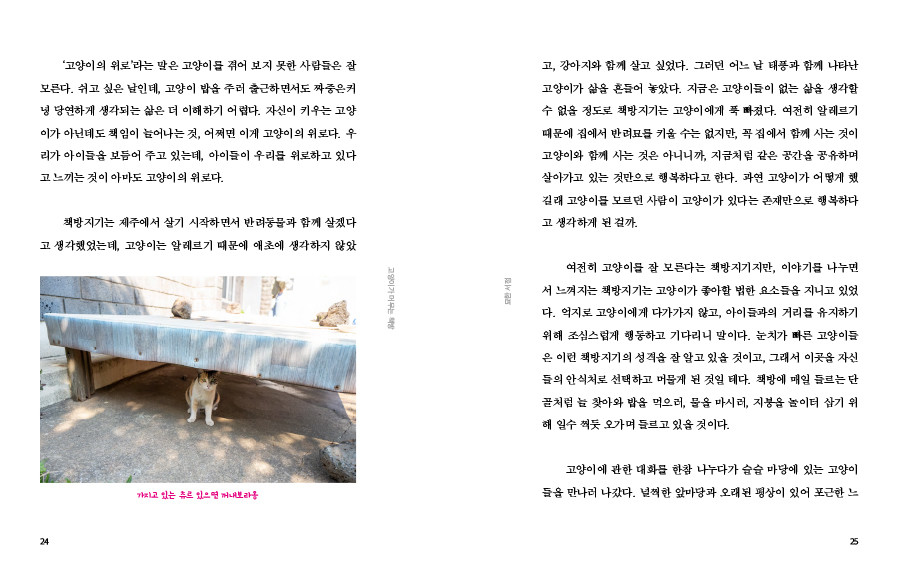책을 빼꼼 펼치는 순간 묘한 매력에 빠져들 책방 고양이들의 이야기를 전한다.