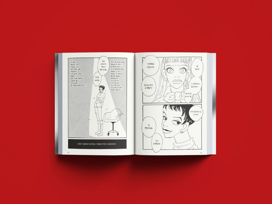 리리코의 심리는 불안정하게 배치된 컷들과 독특한 스크린톤에서 스며나옵니다. 리리코의 몸은 컷 안에 온전히 담기지 않고 잘려 있기 일쑤며, 담배 연기 흐르듯 새하얀 스크린톤은 피사체의 윤곽선을 흩뜨려뜨립니다. 작품은 전혀 다른 의미로 신화와 전설이 되고 있는 리리코의 변모를 예고하며 결말을 향해 치달아갑니다. 리리코의 마지막 쇼, 마지막 서비스가 궁금하신가요? 몸이 망가진다는 사실보다도 자신의 몸뚱이가 잊힌다는 사실을 참을 수 없었던 욕망의 몽타주, 리리코의 무대로 초대합니다.