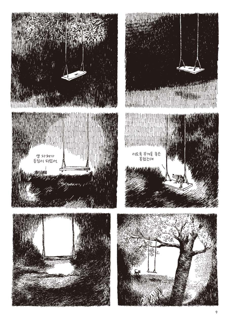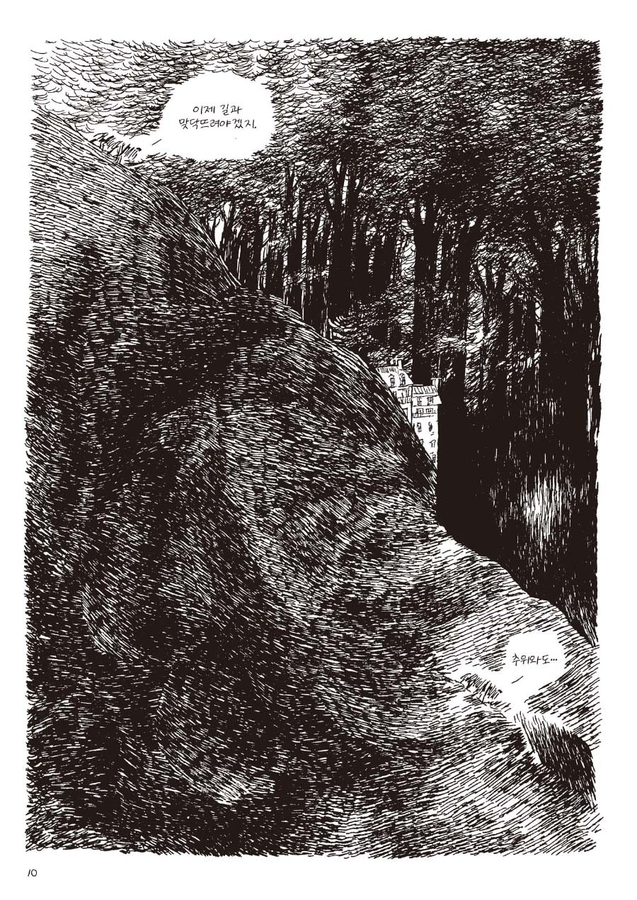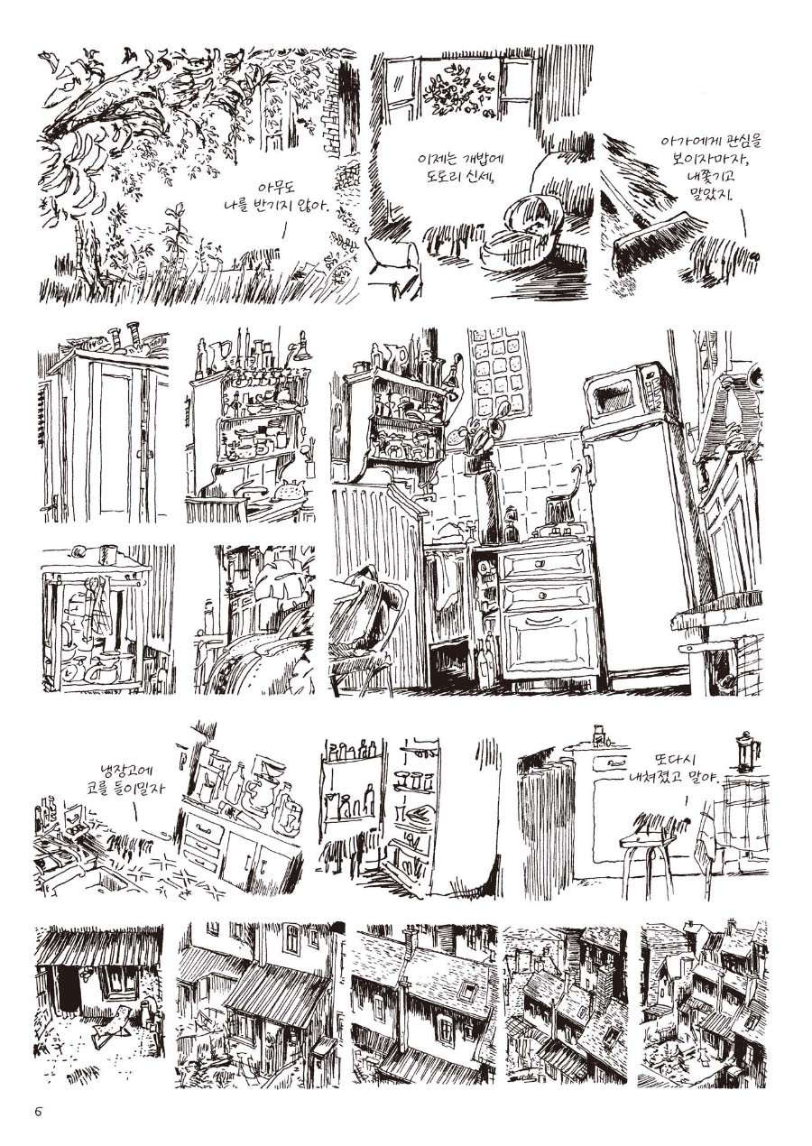 배가 고프면 쓰레기통이라도 뒤지고 잠이 몰려오면 그저 달비만으로 포근한 잠자리로 삼았지요. 죽을 때가 되면 무리로부터 도시로부터 동물은 야생의 본능을 따라 자연으로 가기 마련이랍니다. 함께였던 이들을 위해, 진정 혼자가 될 결심을 하는 거죠. 태어난 곳, 혼자가 된 곳은 정할 수 없었지만 생을 마무리할 곳은 스스로 점하고 싶기도 했고요. 하지만 이 이야기, 그렇게 우울한 것만은 아닙니다.