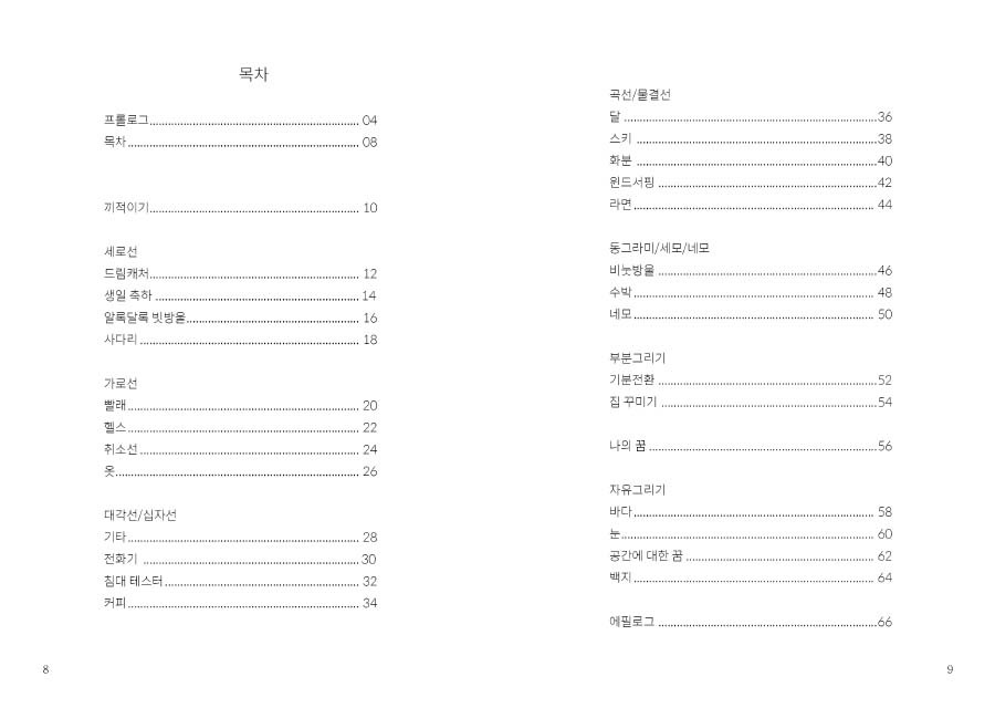 이 책은 저처럼 귀찮은데 심심할 때, 무언가 하고 싶은데 아무것도 할 수 없을 때 가볍게 펼쳐 보았으면 하는 바람을 담아 만든 어른을 위한 선긋기 책이에요. 이 책이 누군가에게는 심심한 시간을 때우는 심심풀이 땅콩 같은 책이, 누군가에게는 다시 연필을 쥐게 하는 위로의 책이 되길 소망해 봅니다.