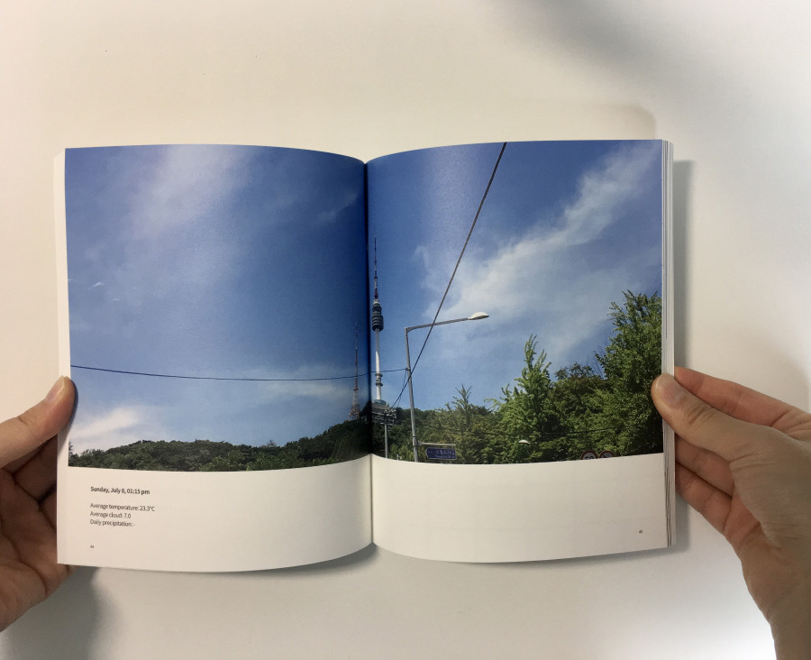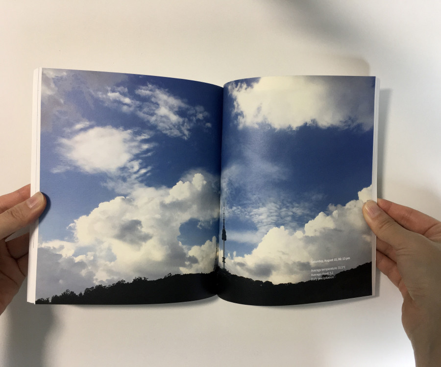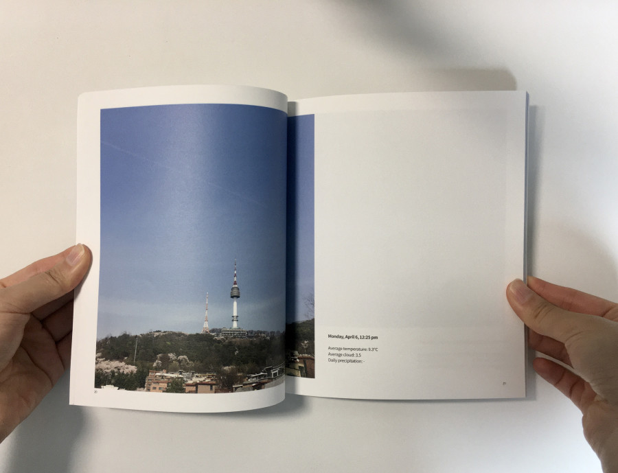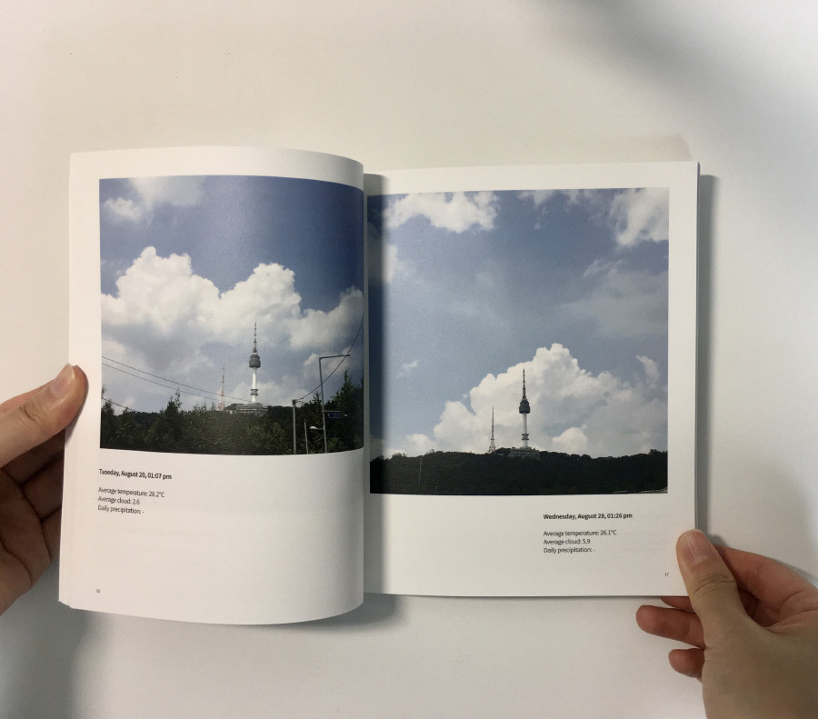 기록한 사진마다 그날의 월,일, 시간, 평균 기온, 평균 운량, 강수량을 기록하였다.