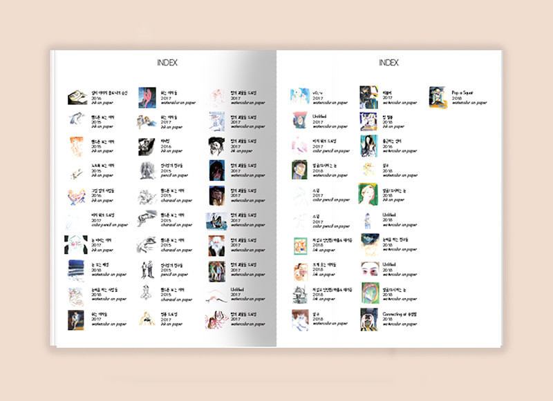 <Eunsae Lee>는 페인터 이은새가 2014년부터 2018년까지 제작한 드로잉들 중 81점을 선별해 배치한 드로잉북으로 지금, 서울에서 여성으로서 관찰하고 느끼는 감각들을 날 것그대로 보여준다.
