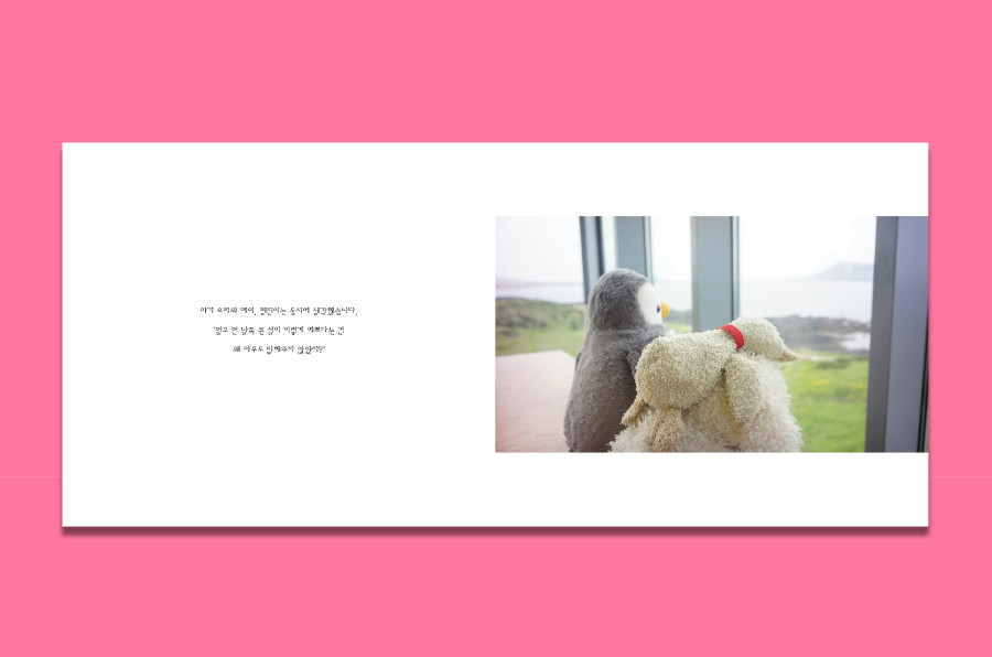 여행 중에 아기 펭귄, 아기 양을 만나 함께 여행하며 삶의 의미에 대해서 돌아보게 되는 내용을 담고 있습니다.