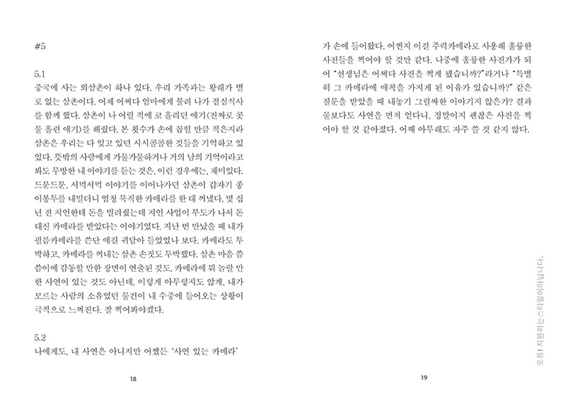 기록을 자주 한다. 글을 쓰고, 사진을 찍는다. 어디까지나 비전문가의 취미 활동이지만, 찍고 쓰는 행위에 대한 강박만큼은 전문가 못지않은 듯하다. <기록벽>은 그 기록들을 모아 만든 첫 번째 결과물이다. 기록이라는 행위에 초점을 맞추자, 이런 걸 굳이 기록할 필요가 있을까 싶던 일들마저 기록으로서의 가치를 지니게 되었다. 이제는 이것도 기록, 저것도 기록, 깎아버린 손톱 개수까지도 기록할 판이다.