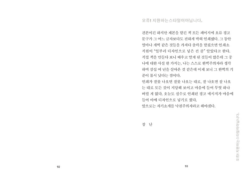 남의 일상과 생각을 들여다보고 싶은 독자의 호기심. 그리고 개인적인 기록이 어디까지 타인에게 공감을 얻어낼지 궁금한 저자의 호기심.