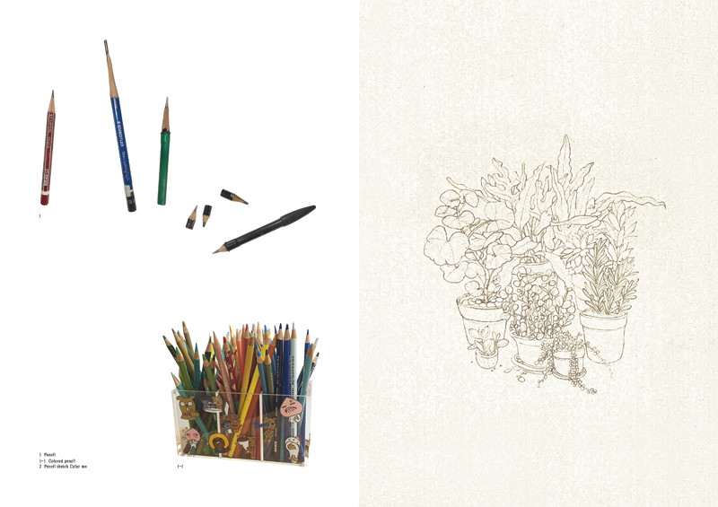 언뜻 보이는 연필, 색연필, 물감 등의 이미지가 흥미롭고, 책장을 다 넘겼을 때,