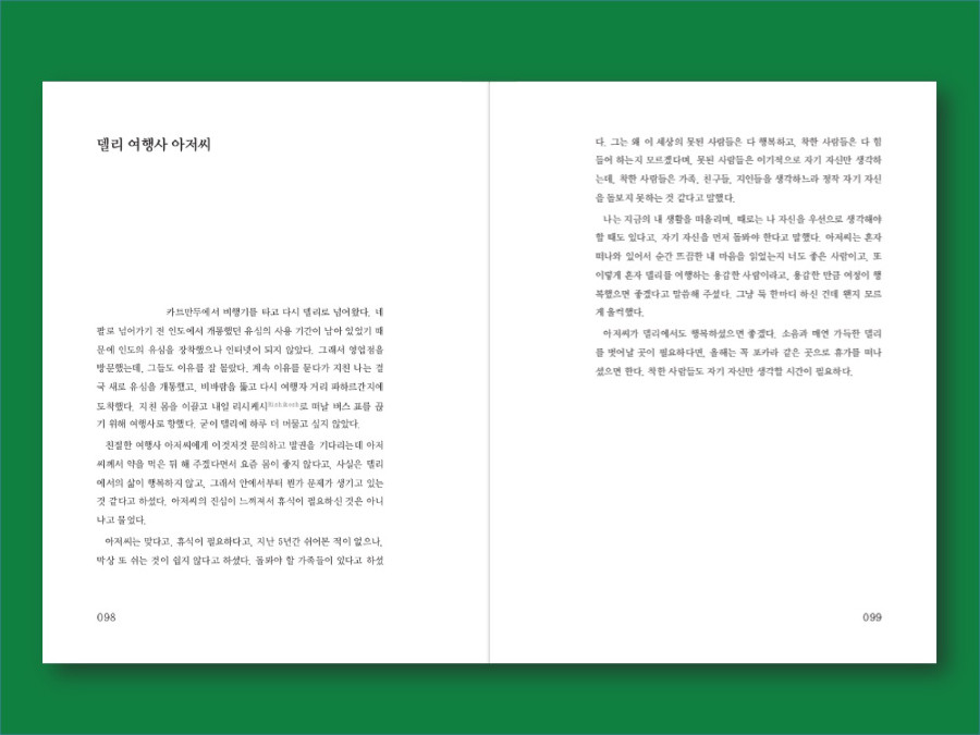 다양한 사람들과 동물들을 만났습니다. 하루종일 정처없이 걸었고, 시트콤 같은 에피소드도 많이 생겼습니다. 그래서 이 모든 기록을 모아 거창할 것 없이 가볍고 유쾌한 책을 만들었습니다.