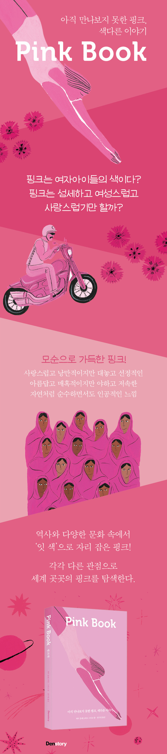 그러나 핑크는 변신하는 색이다. 색상에 따라, 또 맥락과 주변 색에 따라 낭만적이지만, 대담하고 저속하기도 하다. 빨강과 하양 사이 핑크의 영역은 제법 멀듯, 역사와 다양한 문화권에서 핑크는 유행을 거듭해오며 자신의 색과 의미를 유연히 바꾸었다. 파스텔핑크, 페미니즘과 핑크의 상업화를 이끈 밀레니얼핑크, 가장 최신 유행을 이끈 형광 핑크까지 다양한 핑크의 향연을 이 책에서 감상할 수 있다.