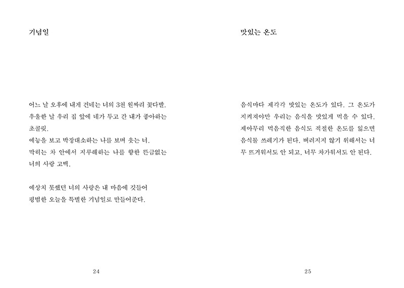 2014년 독립출판물 『스친 것들에 대한 기록물』을 시작으로 독립출판 작가로 꾸준하게 활동하고 있다. 그 외에도 독립출판물 『꽃같거나 ㅈ같거나』, 『임시폐업』, 『이별의 도피처 사랑의 도시』를 펴냈다.