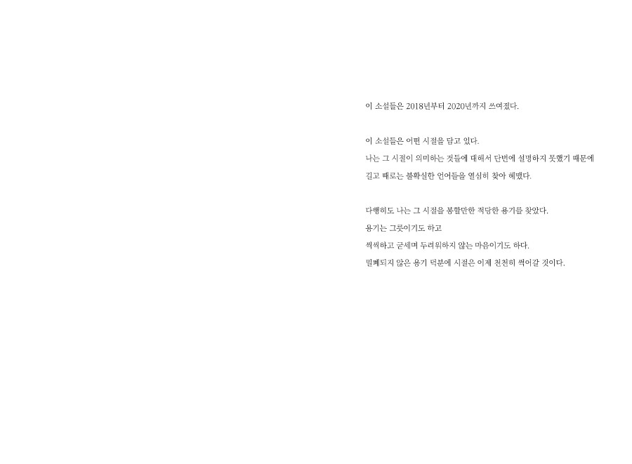 나는 그 시절이 의미하는 것들에 대해서 단번에 설명하지 못했기 때문에 길고 때로는 불확실한 언어들을 열심히 찾아 헤맸다.