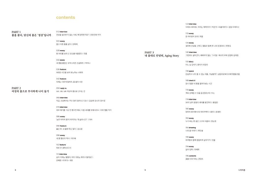 조금은 다른 시선으로 ‘몸’과 ‘나이’를 바라보며좀 더 나은 내일을 모색하는 이들에게 따뜻한 응원을 함께 전하고자 합니다.
