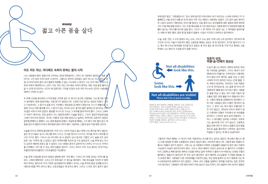 아프고, 늙고, 다르고, 연약한 몸들의 이야기를 담아 보았습니다.