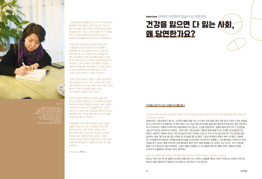 건강을 잃으면 다 잃는 사회, 왜 당연한가요? | 조한진희 작가