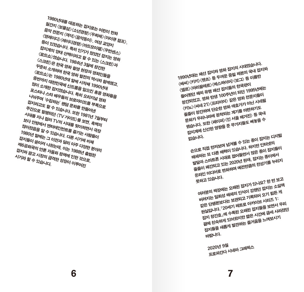 우리 곁에 친숙하게 있어왔지만 짧은 시간에 금세 사라졌던 잡지들을 새롭게 발견하는 즐거움을 느껴보시기 바랍니다.
