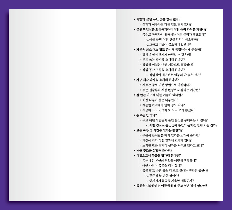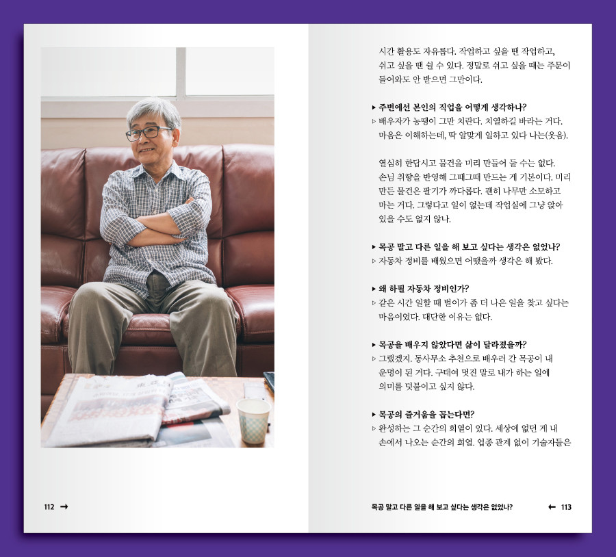 > 목공 말고 다른 일을 해 보고 싶다는 생각은 없었나?