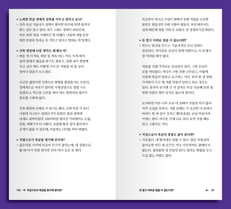▷ 직업으로서 목공을 평가해 본다면?