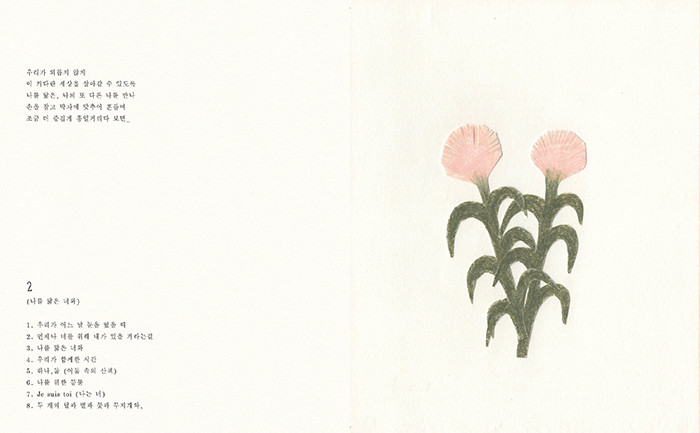 얇은 노루지에 스탬프를 직접 찍어 한 장씩 책 사이에 끼워 제본했습니다.
