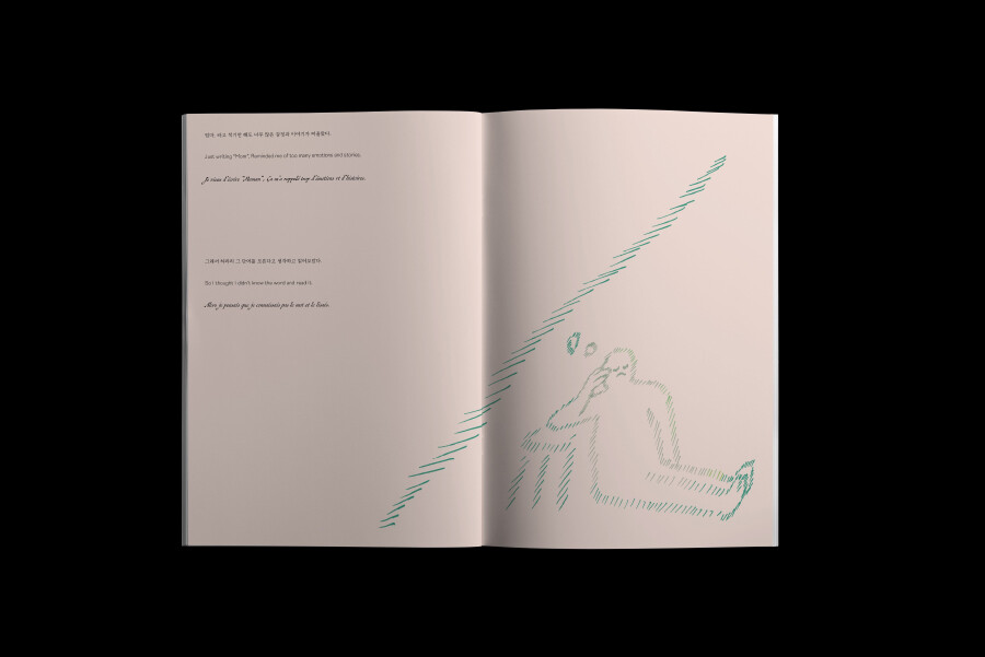 다른 나라 말로도 읽어보았다. 영어와 불어로. mom은 “두 개의 터널을 지나서 본 태양 그 옆에 쌍무지개”, maman은 “엉덩이, 볼을 긁적이는 손, 눈썹, 머리를 긁적이는 손, 기지개 켜기.” 그 말들을 몇 번인가 반복해서 말해보았다. 엄마라는 말을 처음 배웠을 때처럼.